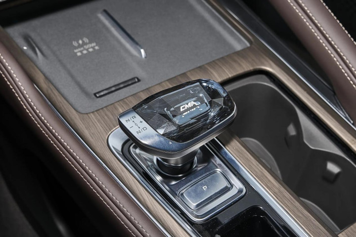 内饰的造型设计变化不大,还是左右分隔的设计,前排中间用隔断做装饰,形成更强的包裹感,提供鸣沙流金环保麂皮内饰,以棕色为主,触感细腻柔软,座椅包裹感强,营造出轻奢舒适的座舱氛围。跟星瑞一样,它也换上了月泉玉樽水晶挡把,档次感很高,豪华感直接拉满。