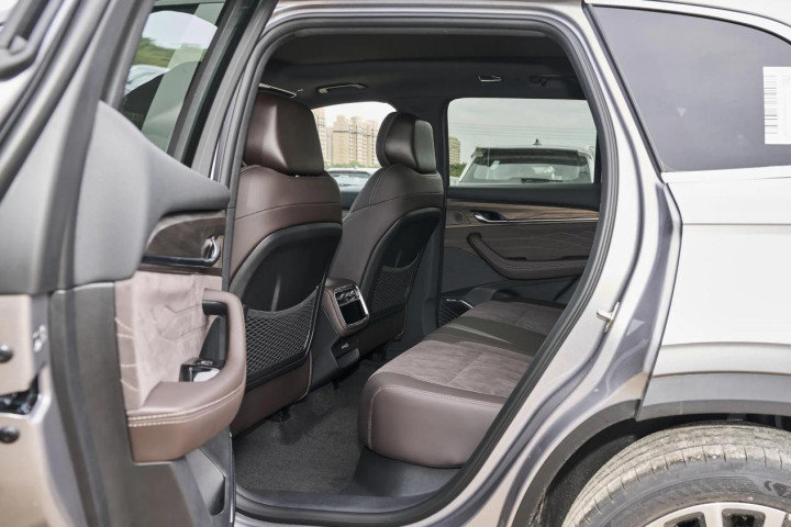 尺寸方面,新车长宽高分别为4795*1895*1689毫米,轴距在2845毫米,车内空间宽敞,实车体验,身高178厘米体验者在调整前排座椅到合适的驾驶坐姿时,坐到后排,头顶还有1拳多的空间余量,腿部空间有2拳多的空间余量,后排地板较为平整,中间位置舒适性不差。